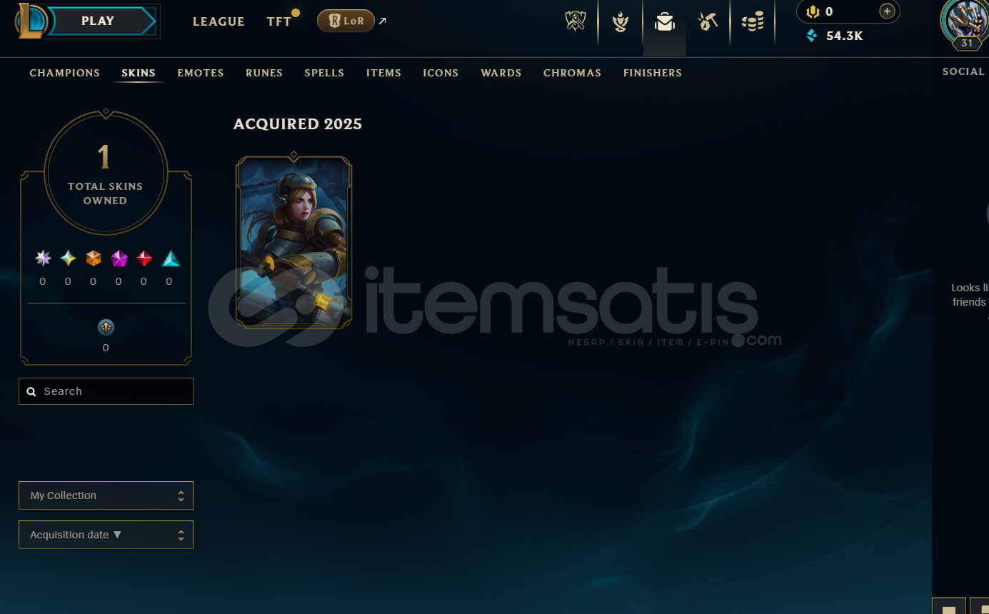 EUW Silver 4 | 1 Kostüm - 54K Mö | LoL Hesap
