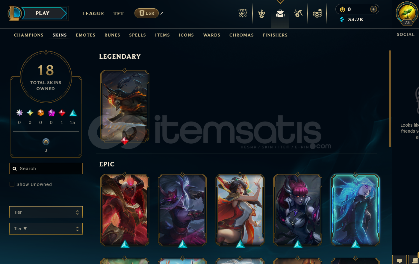 EUW Silver 4 | 18 Kostüm - 33K Mö | LoL Hesap