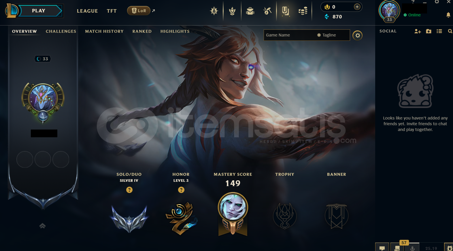 Hesap EUW Tek/Çift Silver 4 - 78 Lp EUW LoL Hesabıdır.