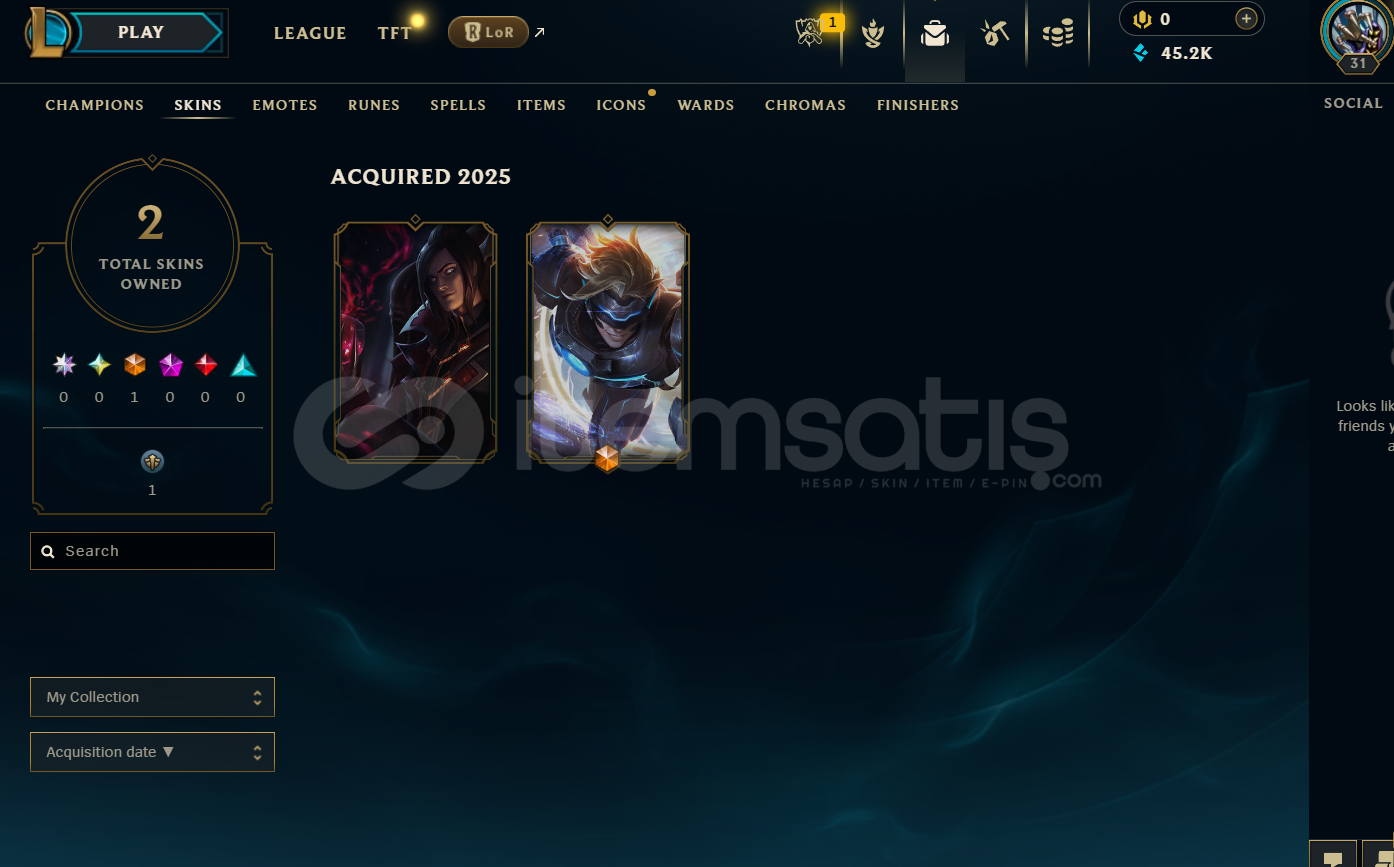 EUW Silver 4 | 2 Kostüm - 45K Mö | LoL Hesap