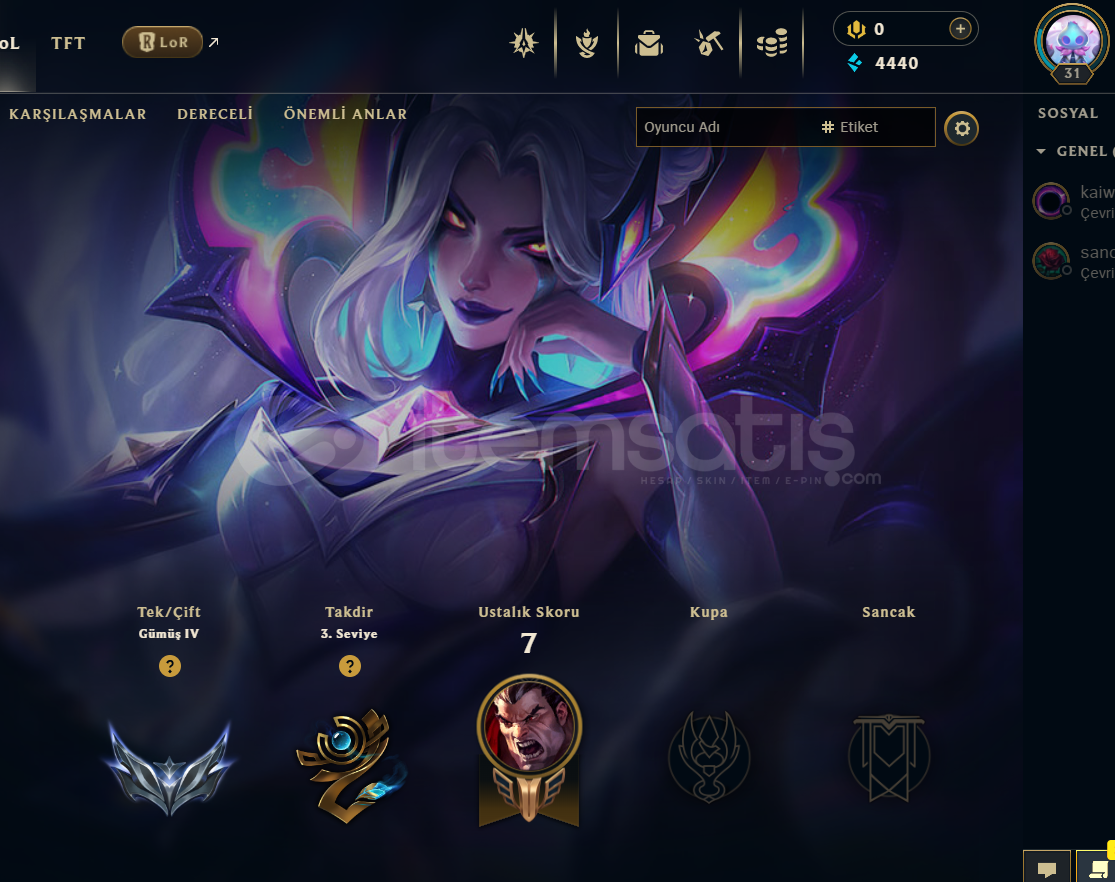 EUW SİLVER 4 / 4 W 2 LS12 HESABI 2022 DE KURULMUŞTUR31 LV36 ŞAMPİYON3 KOSTÜMKENDİ MAİLİNİZE DEVREDİLECEKHIZLI TESLİMAT---------------------------------------------Burada mısınız, hemen teslim alabilir miyim gibi sorular sormanıza gerek yoktur, aktif olmasam bile siparişinizden sonra sms geleceğinden teslimat kısa süre içerisinde yapılır.+400 Başarılı işlemimizde 100...