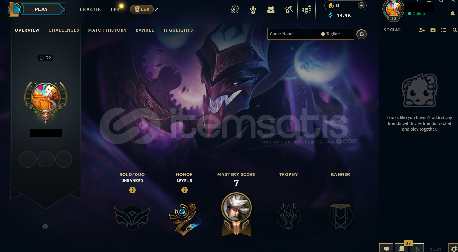 EUW Unranked | 1 Kostüm - 14K Mö|Dereceli Hazır