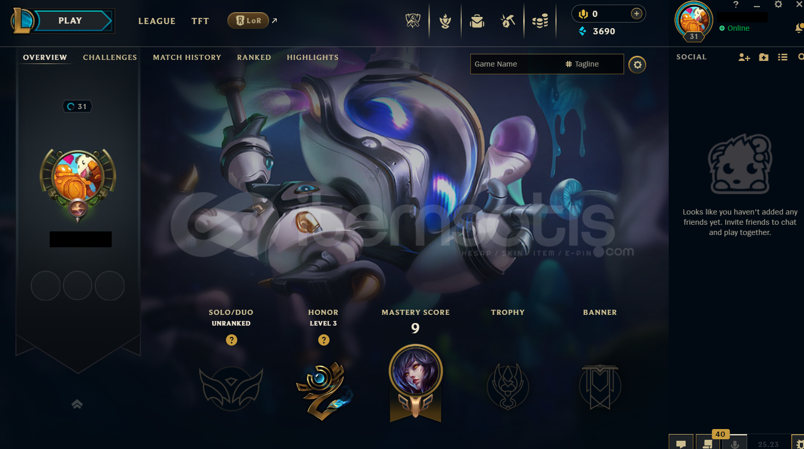 EUW Unranked | 1 Kostüm 22 Hero| Dereceli Hazır
