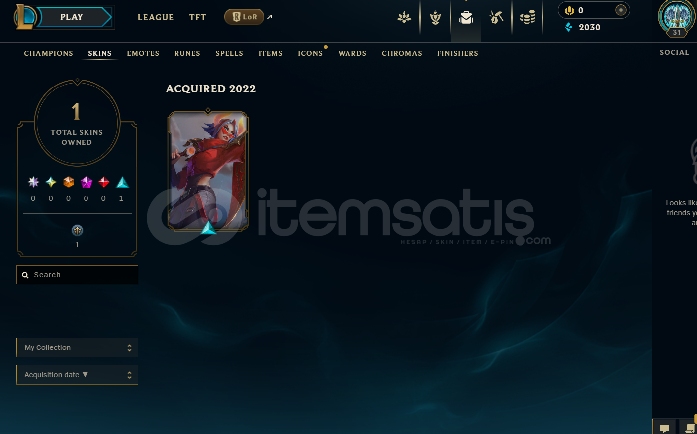 EUW Unranked | 1 Kostüm - 25 Hero | LoL Hesap