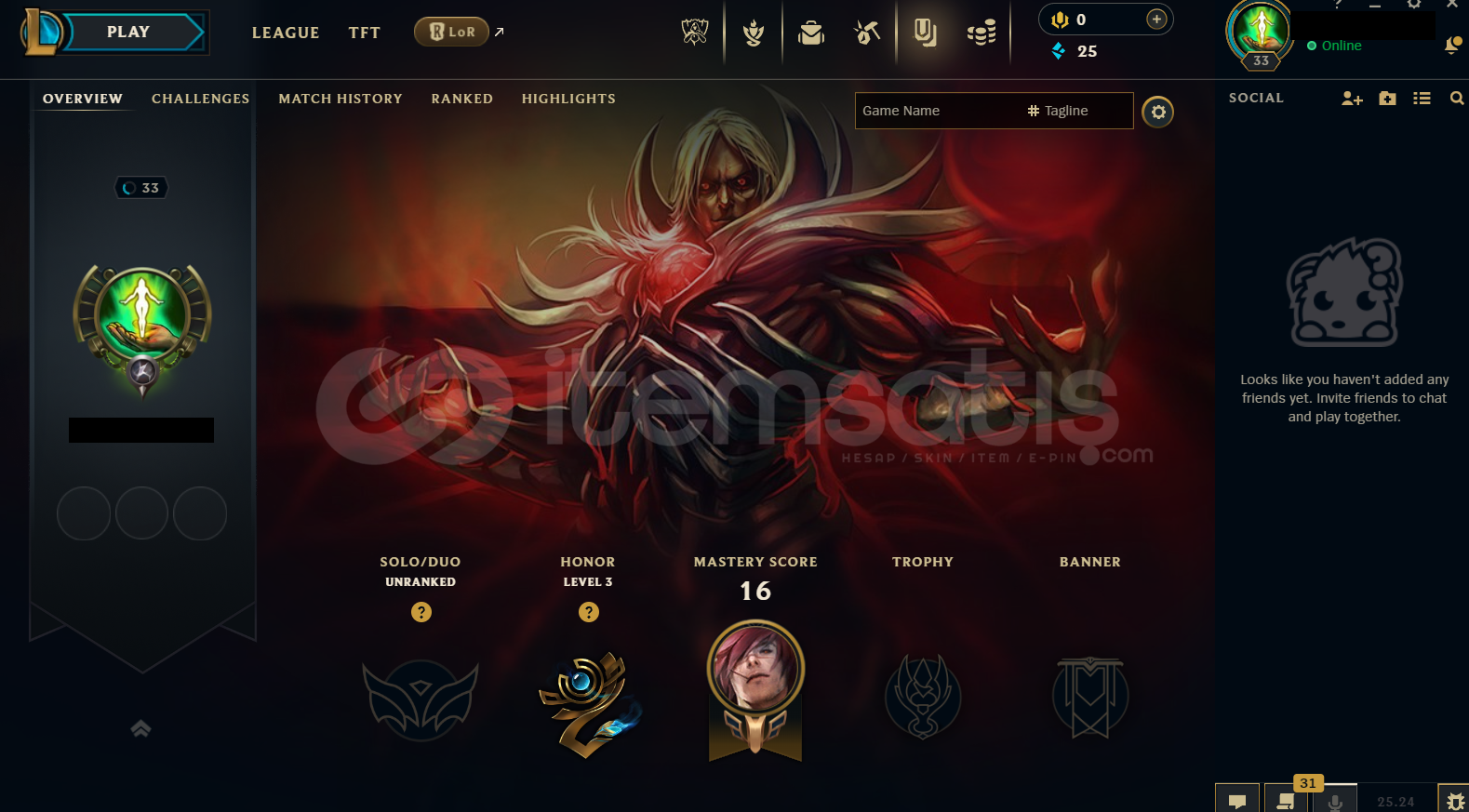 Hesap EUW Unranked LoL Hesabıdır.