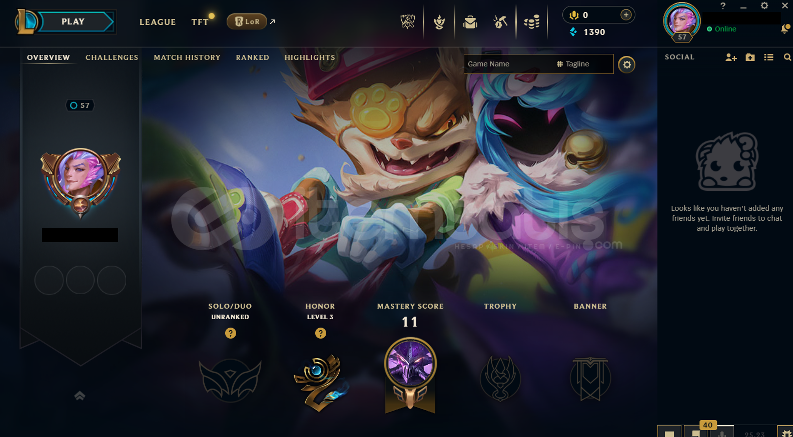 Hesap EUW Unranked LoL Hesabıdır.