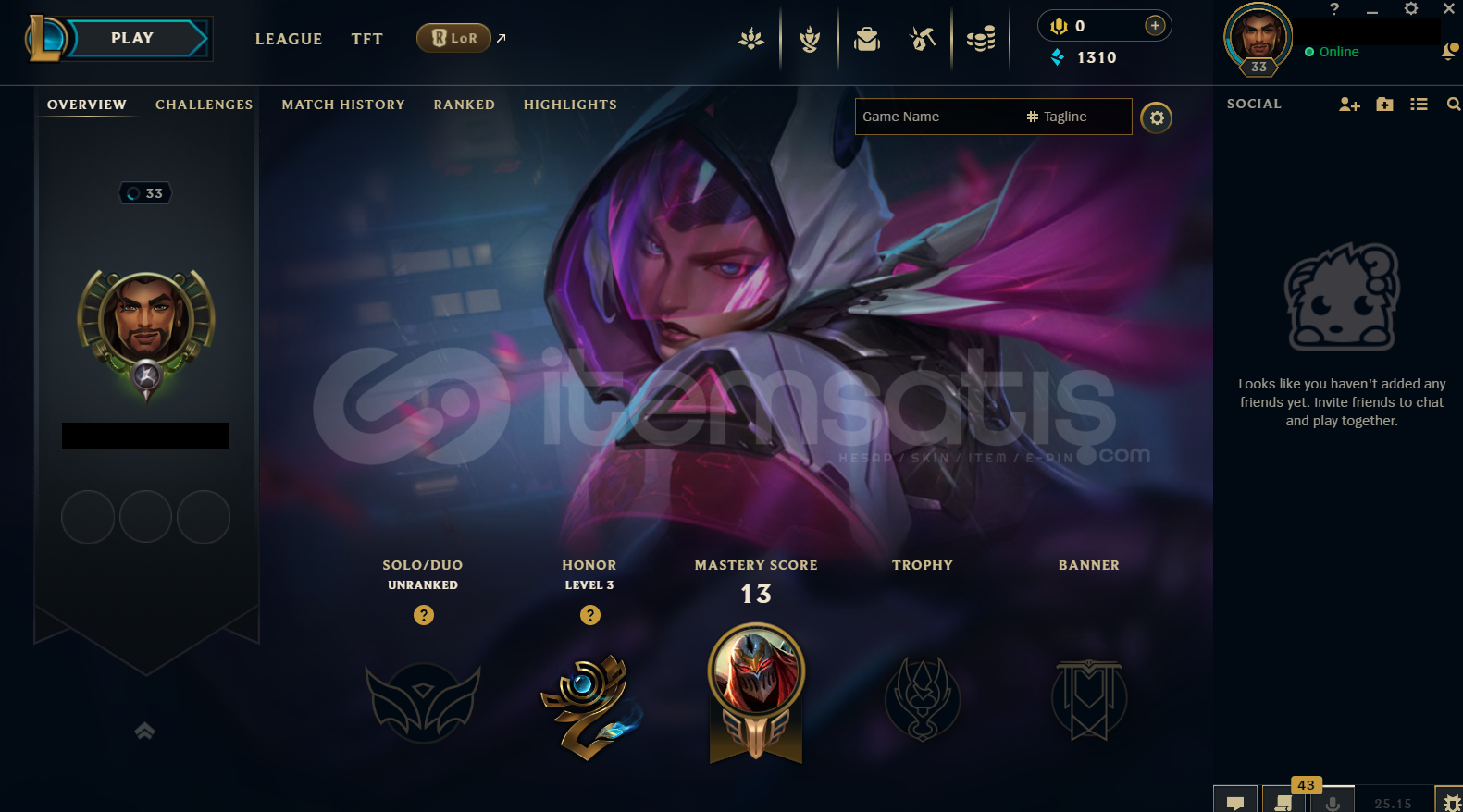 Hesap EUW Unranked LoL Hesabıdır.