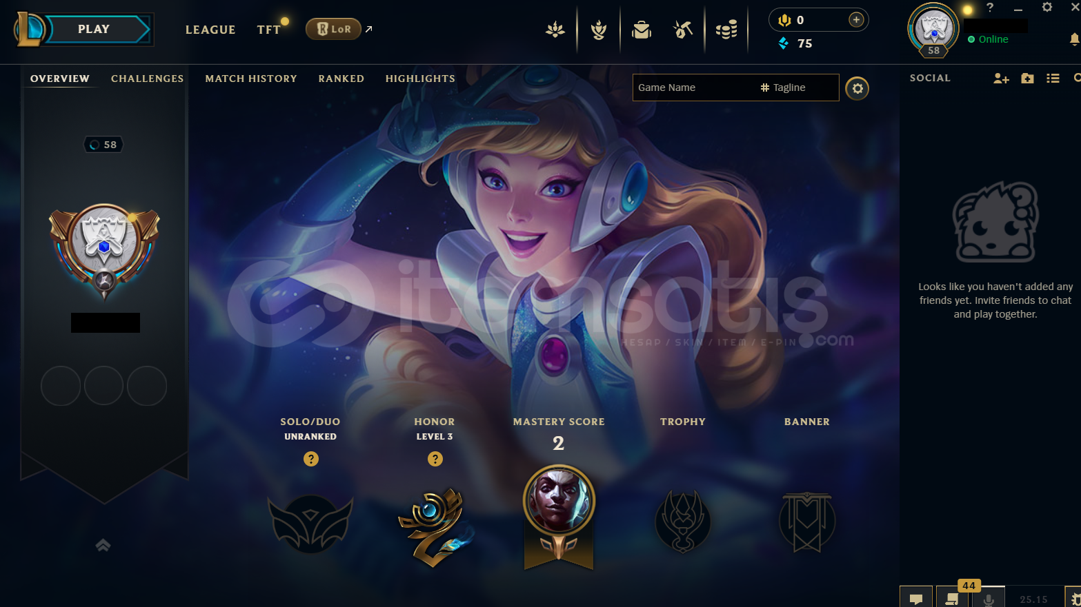 Hesap EUW Unranked LoL Hesabıdır.