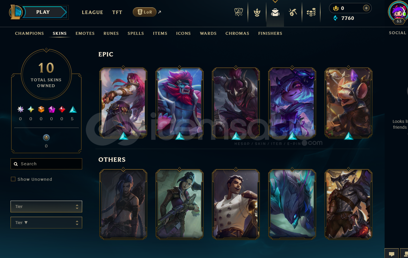 EUW Unranked | 10 Kostüm - 41 Hero | LoL Hesap