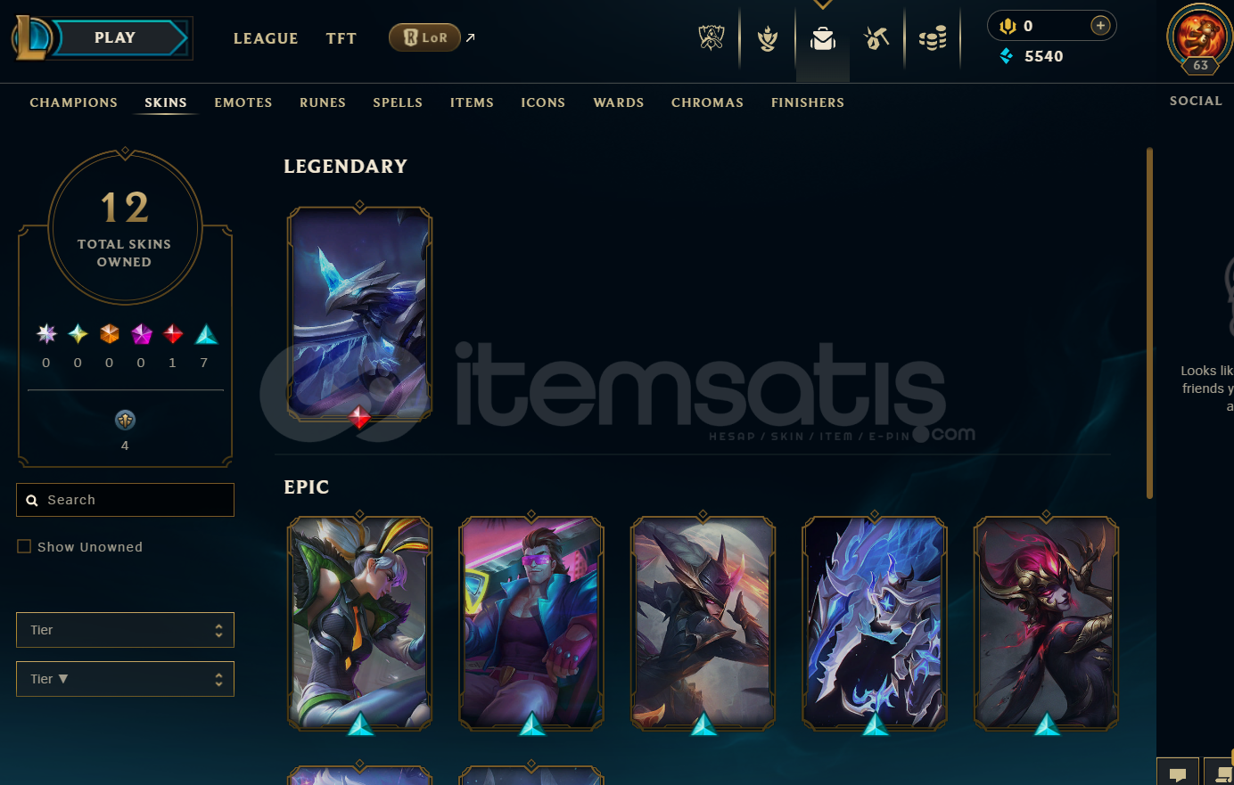 EUW Unranked | 12 Kostüm - 40 Hero | LoL Hesap