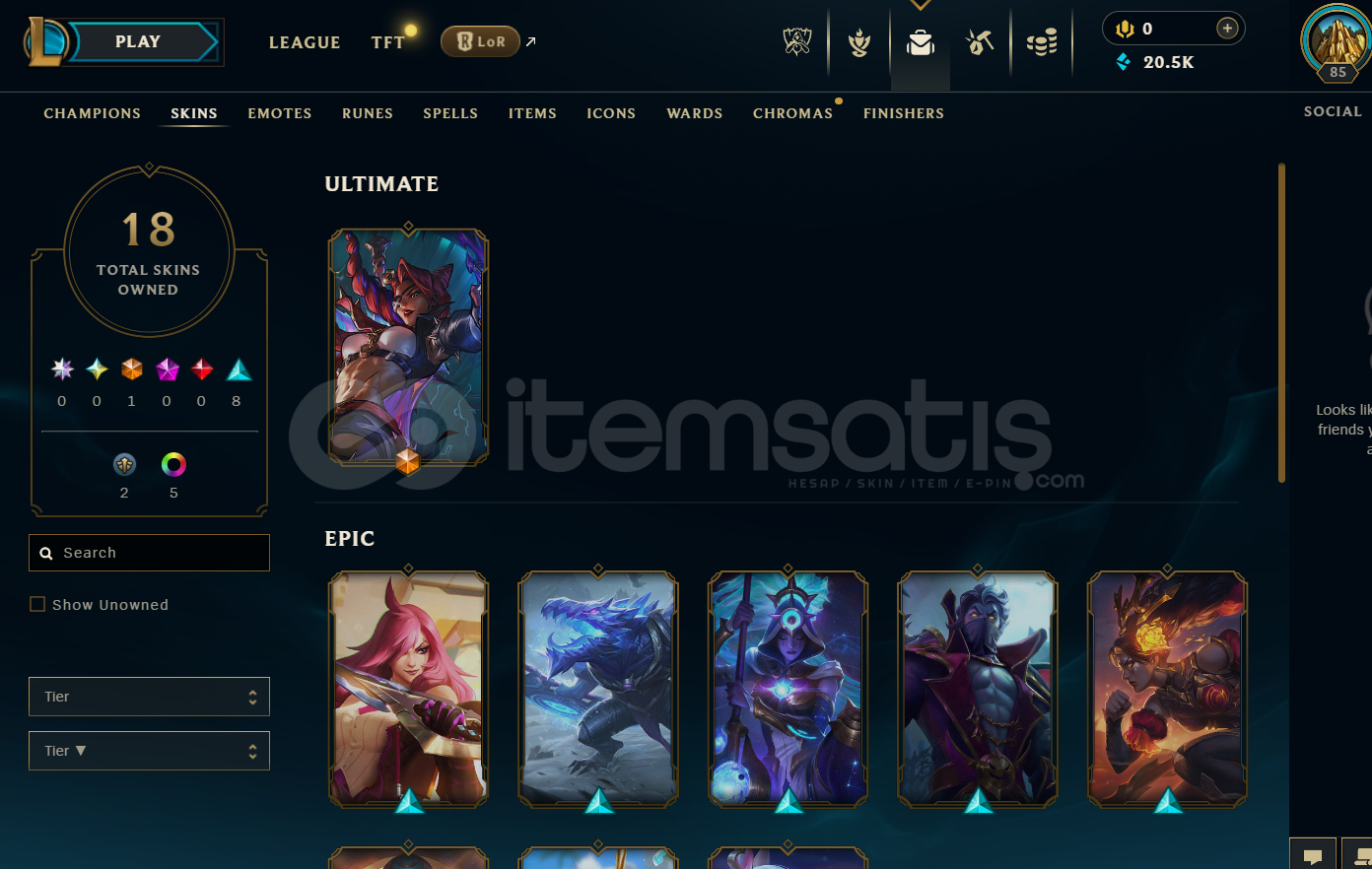 EUW Unranked | 18 Kostüm 20K Mö| Dereceli Hazır