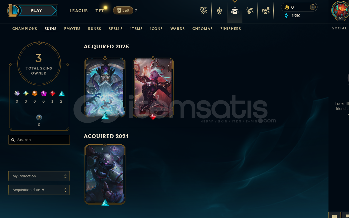 EUW Unranked | 3 Kostüm 12K Mö | Dereceli Hazır