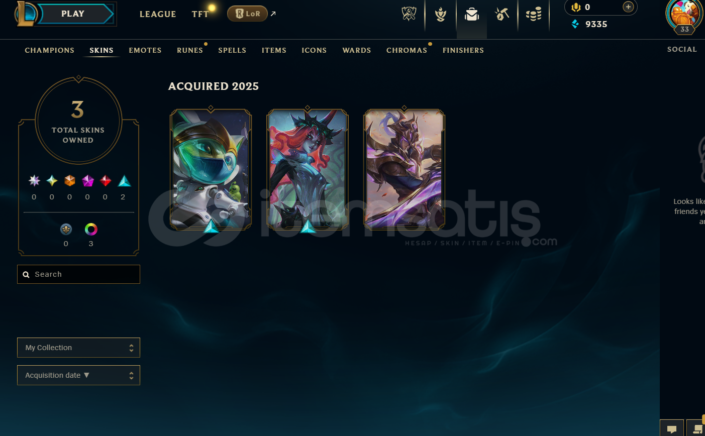 HESAP DETAYLARI:Hesap hiç ban yememiştir ve takdir seviyesi 3 dür.Hesap EUW Unranked LoL Hesabıdır.İçerisinde 9335 Mavi Öz 3 Kostüm 22 Hero ve 3 Adet İade Hakkı Mevcuttur.HESAP HAKKINDA:Kendi mail adresinize kayıt edebilir, etkinleştirmeyi kaldırabilir ve şifresini değiştirebilirsiniz.Hesaplarımızda hiç bir sıkıntı çıkmamaktadır.Herhangi bir sıkınt&#...