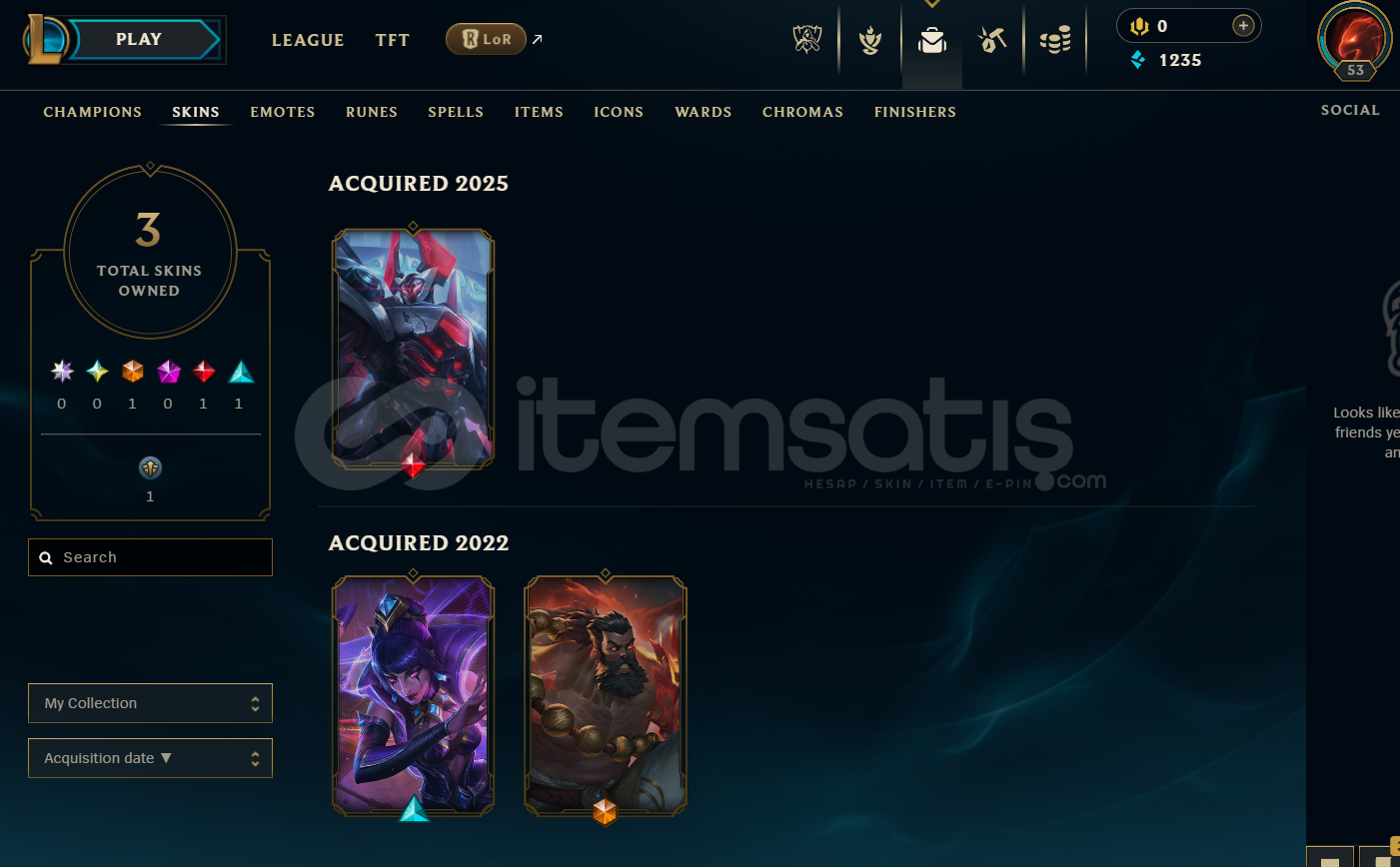 EUW Unranked | 3 Kostüm - 25 Hero |LoL Hesap