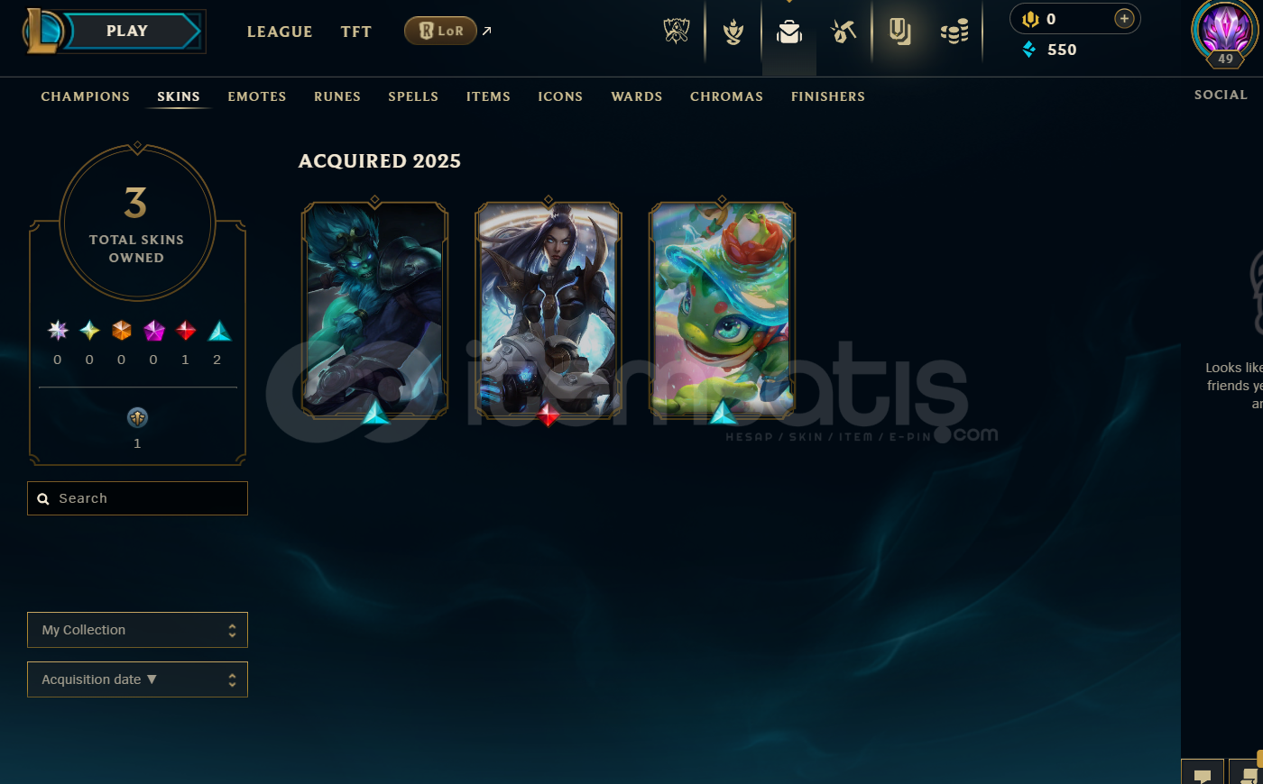 EUW Unranked | 3 Kostüm - 25 Hero|LoL Hesap