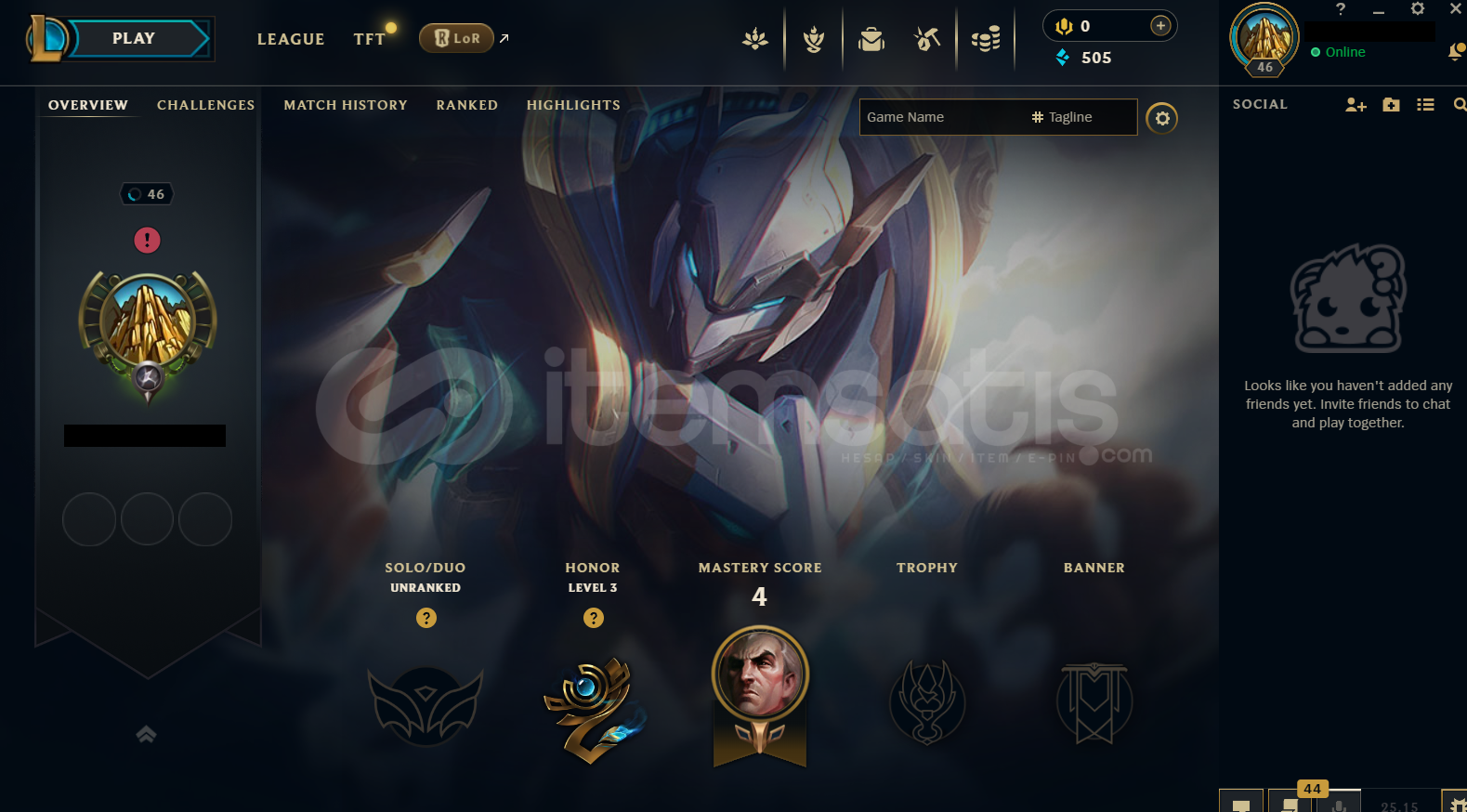 Hesap EUW Unranked LoL Hesabıdır.