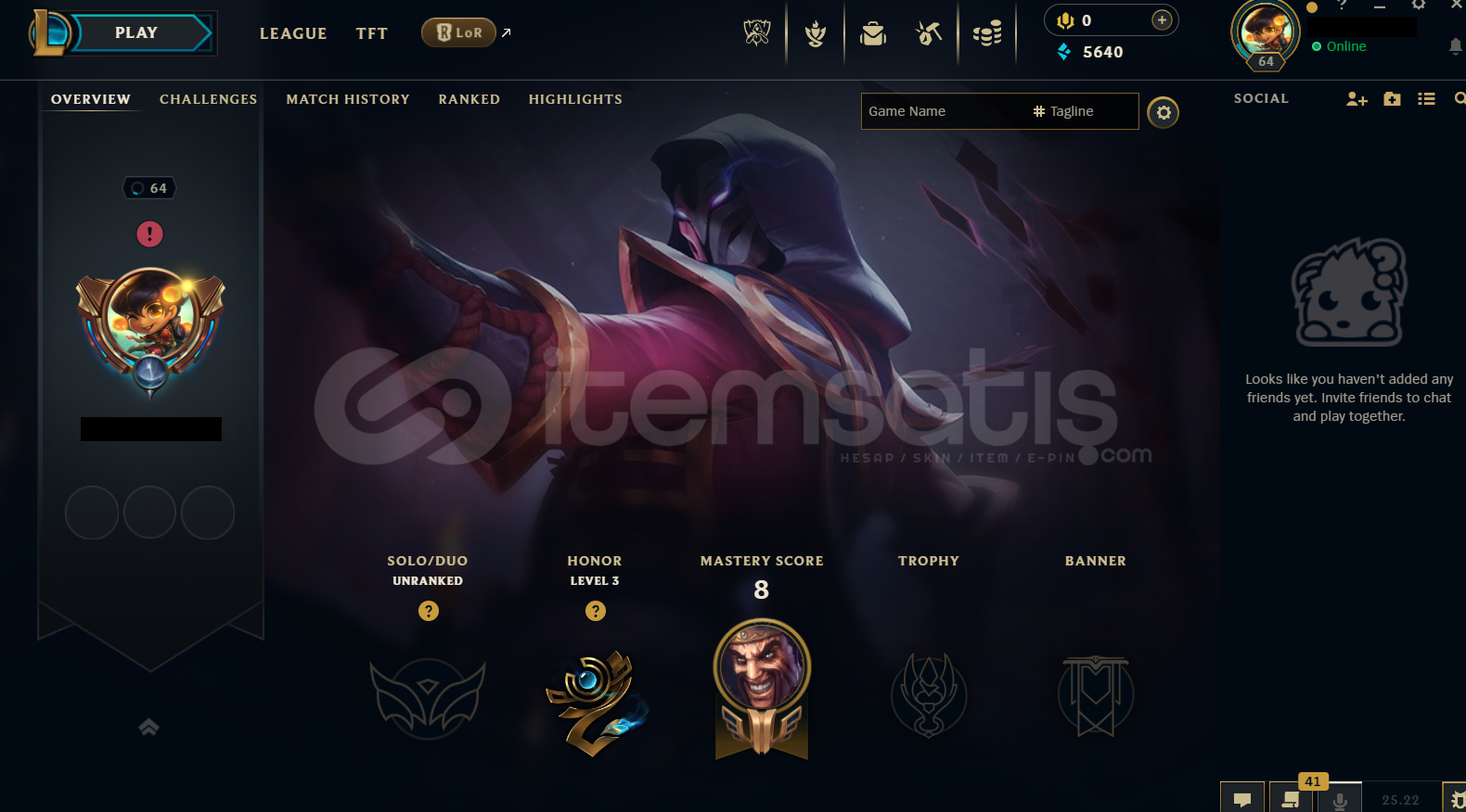 HESAP DETAYLARI:Hesapta 4 Oyun Dereceli Ban Vardır.Hesap EUW Unranked LoL Hesabıdır.İçerisinde 5640 Mavi Öz 3 Kostüm 28 Hero ve 3 Adet İade Hakkı Mevcuttur.HESAP HAKKINDA:Kendi mail adresinize kayıt edebilir, etkinleştirmeyi kaldırabilir ve şifresini değiştirebilirsiniz.Hesaplarımızda hiç bir sıkıntı çıkmamaktadır.Herhangi bir sıkıntıda en iyi desteği ...