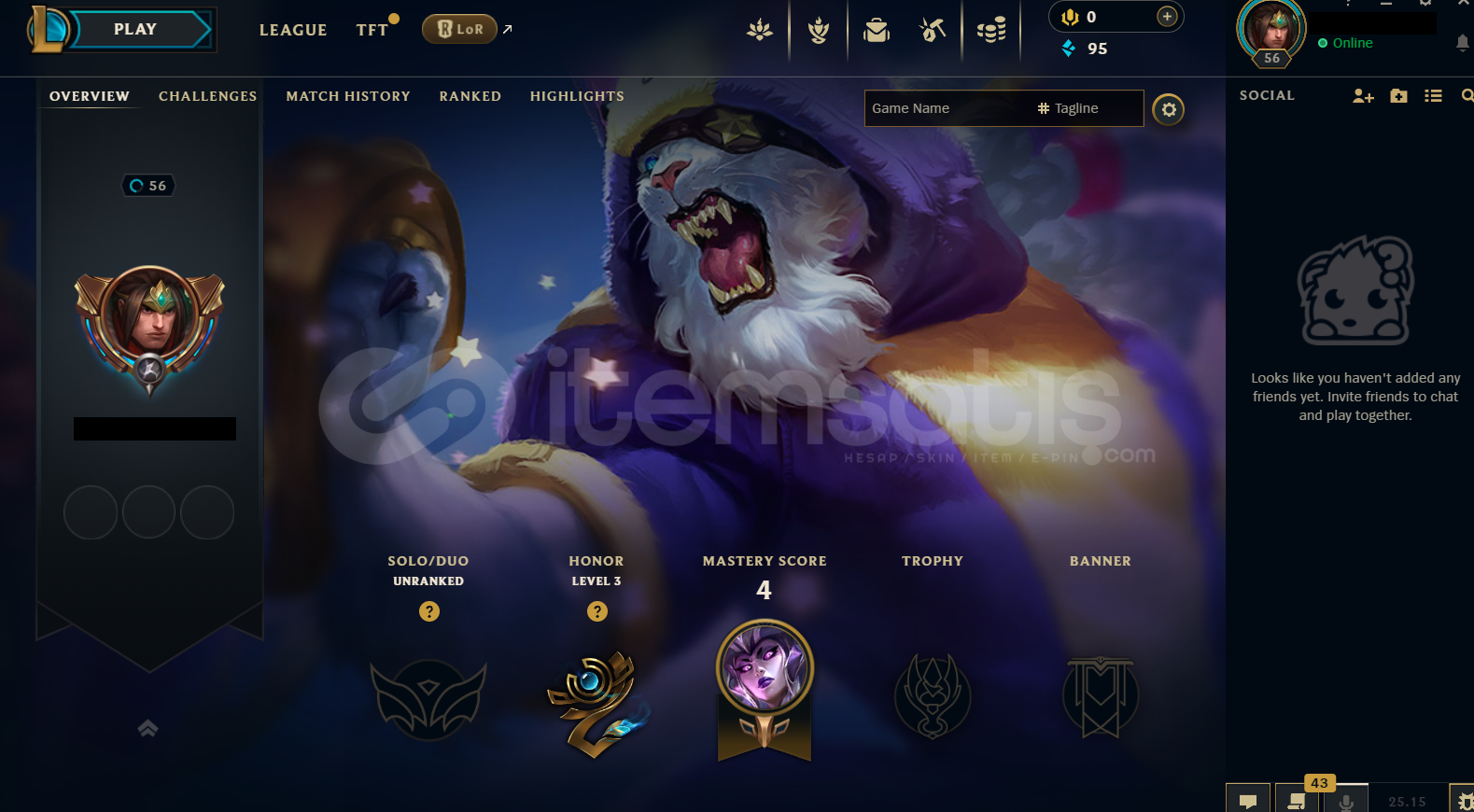 Hesap EUW Unranked LoL Hesabıdır.