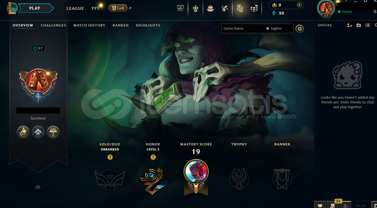 Hesap EUW Unranked LoL Hesabıdır.