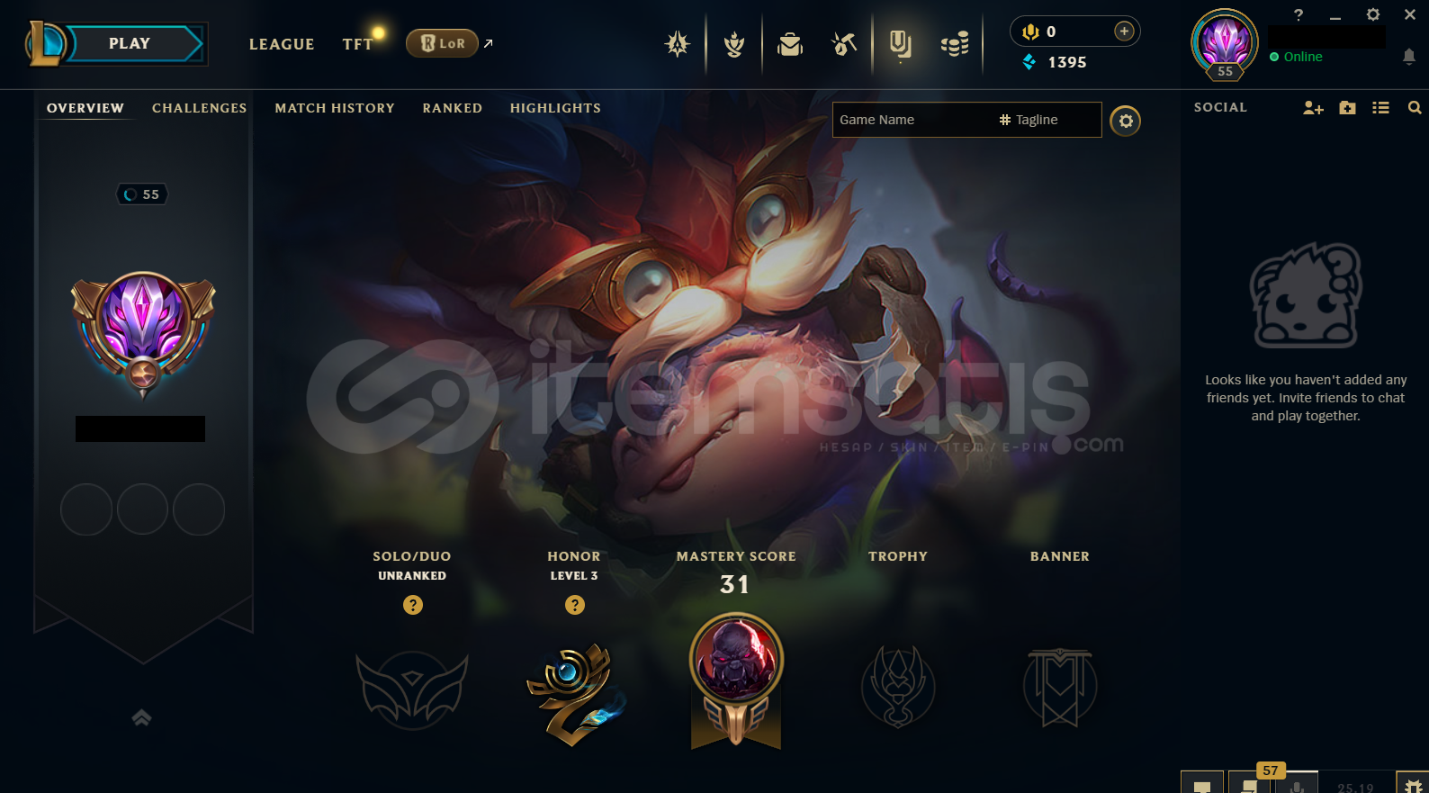 EUW Unranked | 3 Kostüm - 31 Hero |LoL Hesap