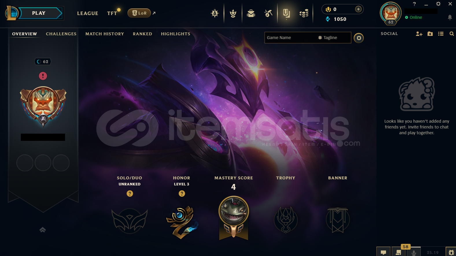 Hesap EUW Unranked LoL Hesabıdır.