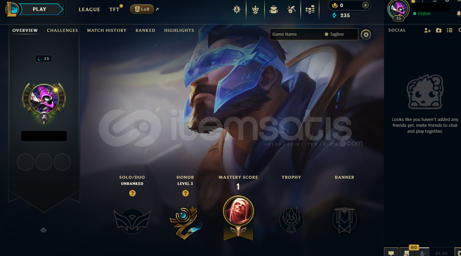 • Hesap EUW Unranked LoL Hesabıdır.