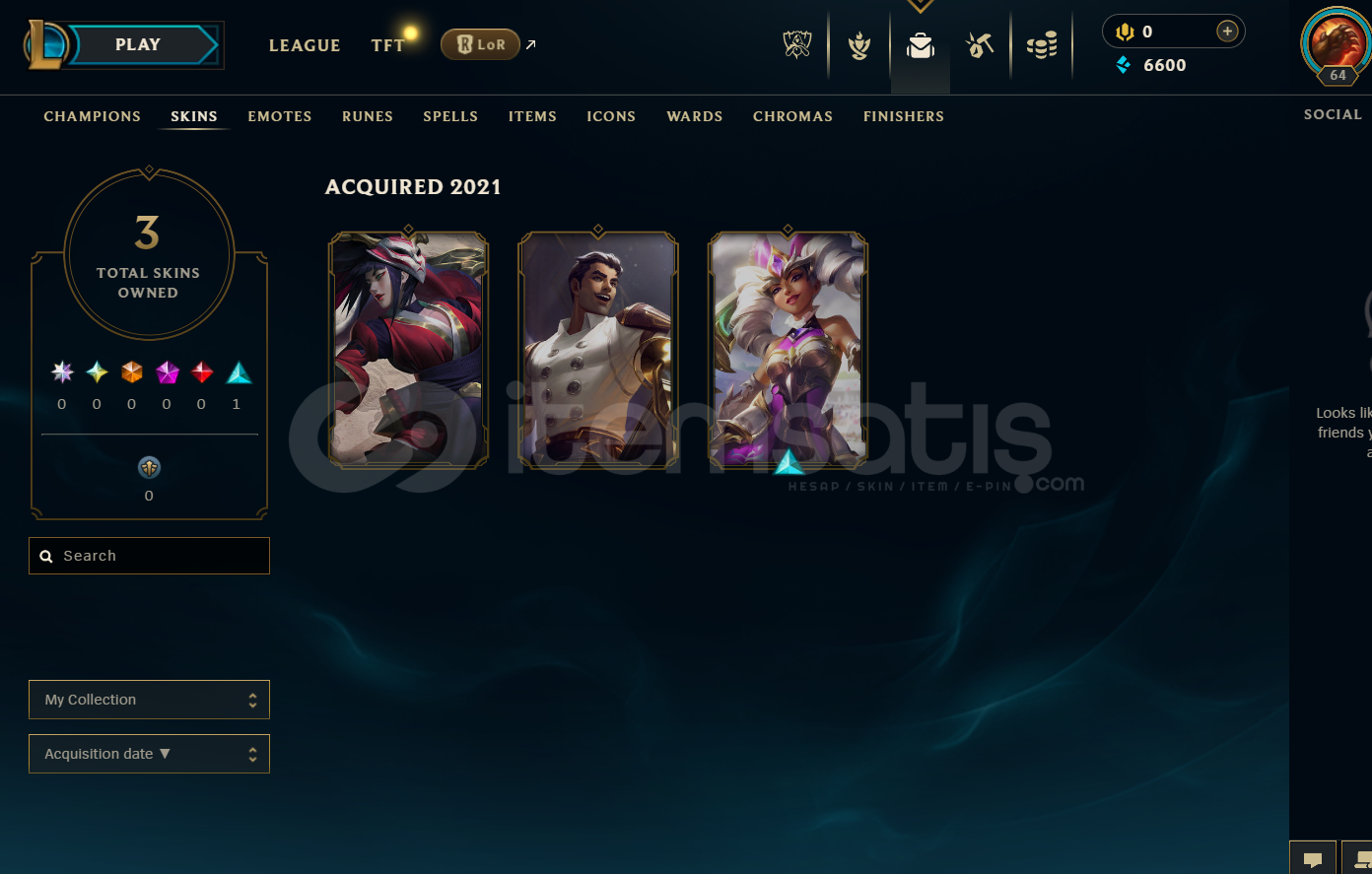 HESAP DETAYLARI:Hesap hiç ban yememiştir ve takdir seviyesi 3 dür.Hesap EUW Unranked LoL Hesabıdır.İçerisinde 6600 Mavi Öz 3 Kostüm 33 Hero ve 3 Adet İade Hakkı Mevcuttur.HESAP HAKKINDA:Kendi mail adresinize kayıt edebilir, etkinleştirmeyi kaldırabilir ve şifresini değiştirebilirsiniz.Hesaplarımızda hiç bir sıkıntı çıkmamaktadır.Herhangi bir sıkınt&#...