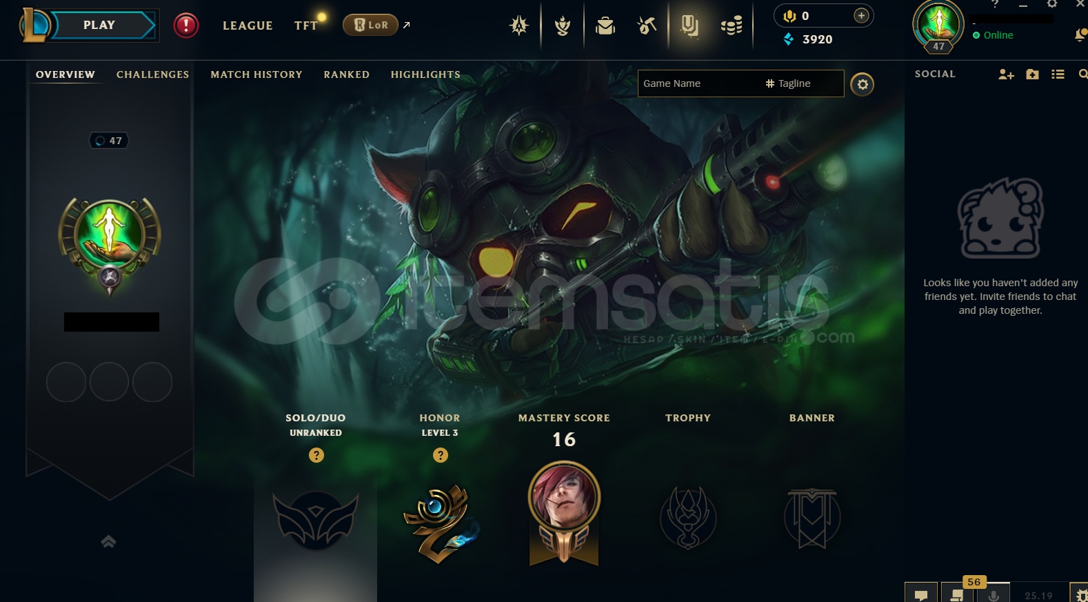 Hesap EUW Unranked LoL Hesabıdır.