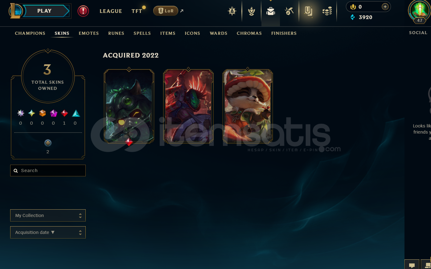 HESAP DETAYLARI:Hesap hiç ban yememiştir ve takdir seviyesi 3 dür.Hesap EUW Unranked LoL Hesabıdır.İçerisinde 3 Kostüm 33 Hero ve 3 Adet İade Hakkı Mevcuttur.HESAP HAKKINDA:Kendi mail adresinize kayıt edebilir, etkinleştirmeyi kaldırabilir ve şifresini değiştirebilirsiniz.Hesaplarımızda hiç bir sıkıntı çıkmamaktadır.Herhangi bir sıkıntıda en iyi dest...