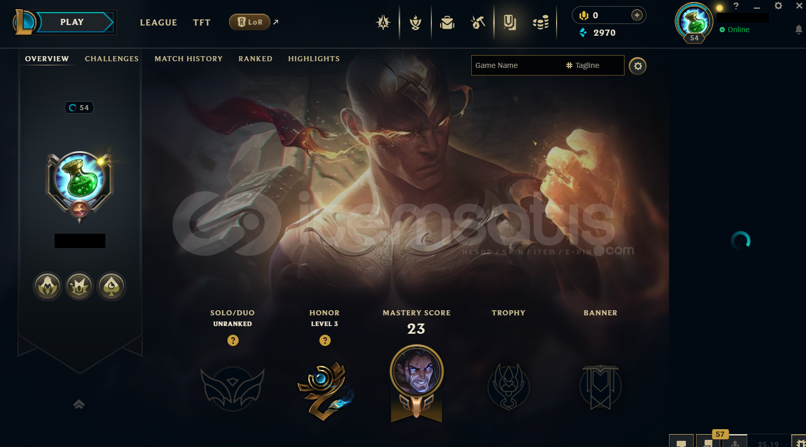 • Hesap EUW Unranked LoL Hesabıdır.