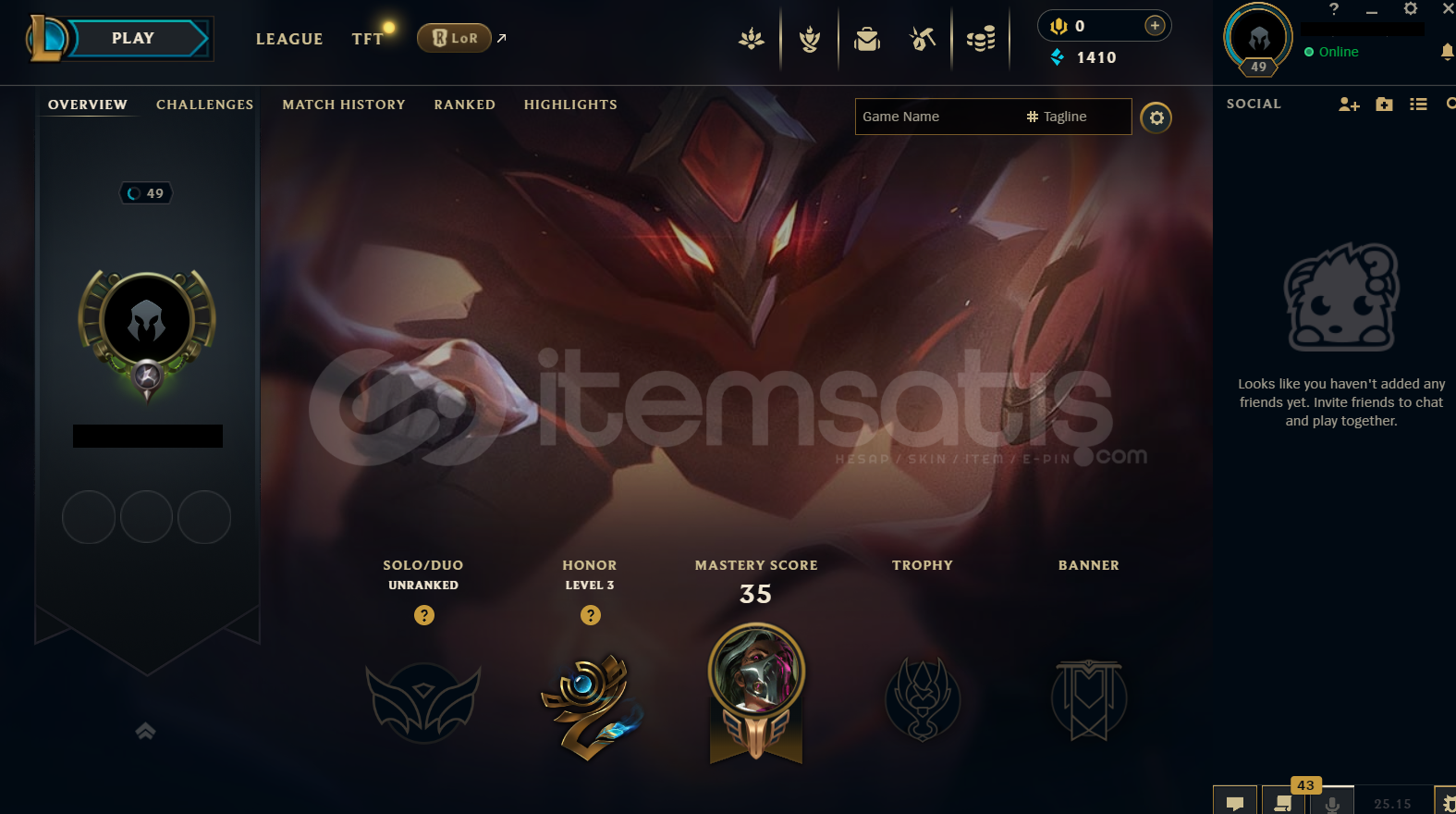 • Hesap EUW Unranked LoL Hesabıdır.