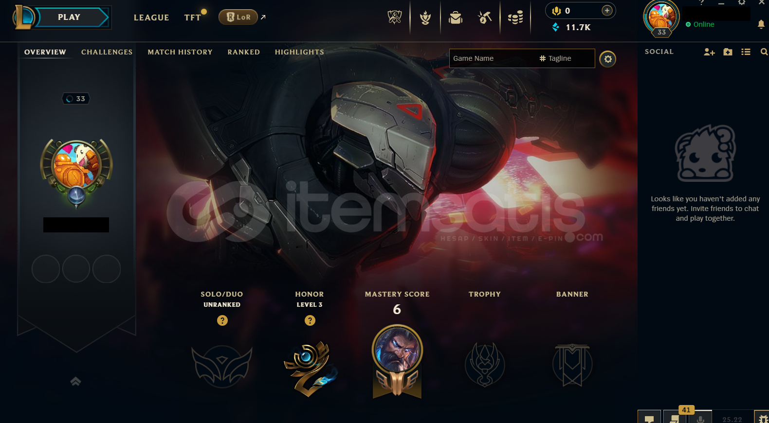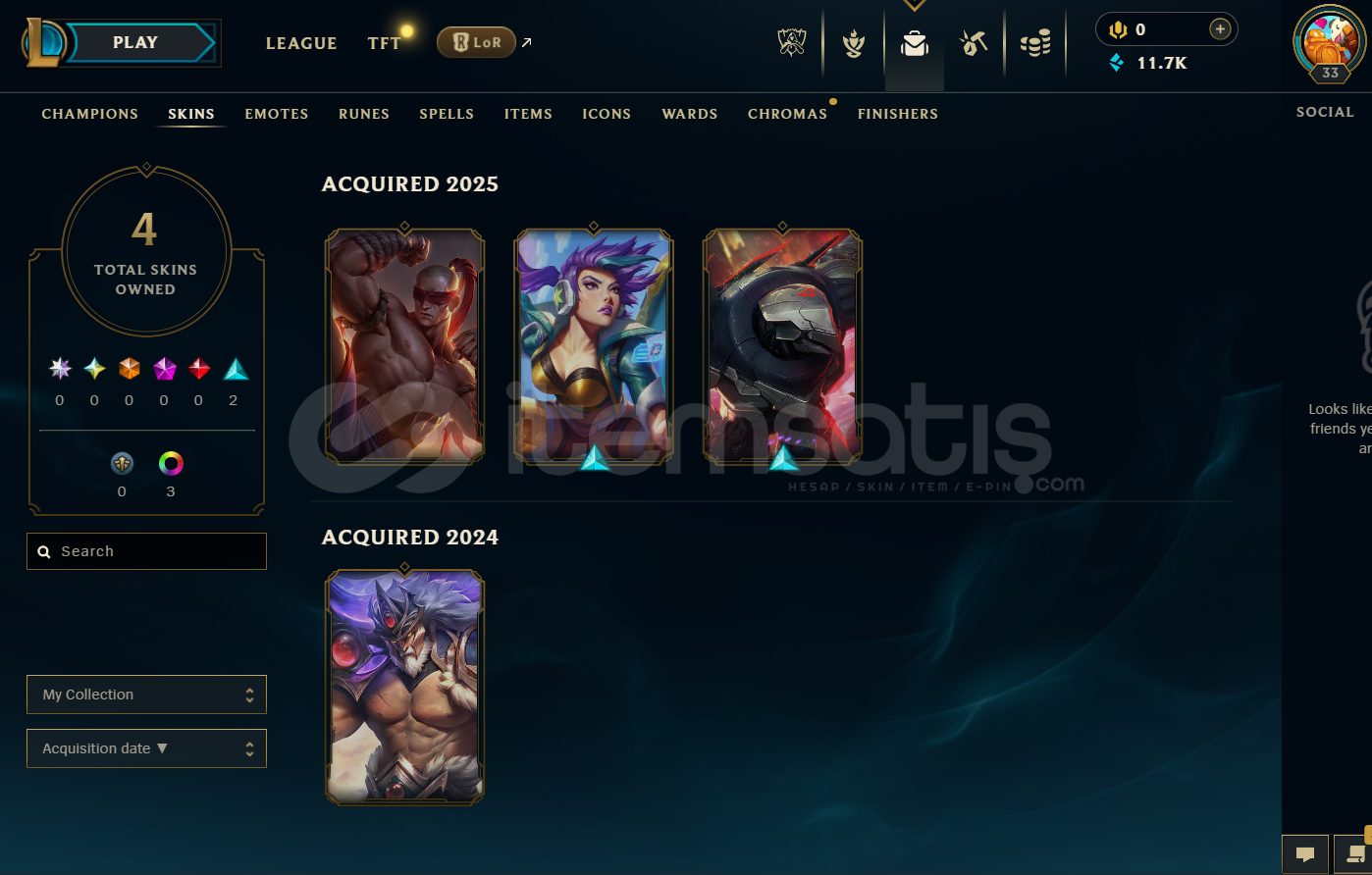 EUW Unranked | 4 Kostüm 11K Mö | Dereceli Hazır
