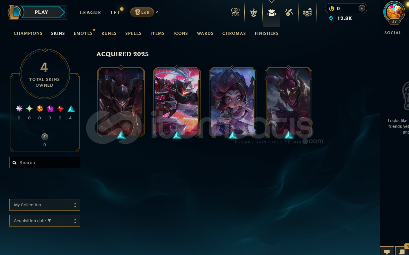 EUW Unranked | 4 Kostüm - 12K Mö | LoL Hesap