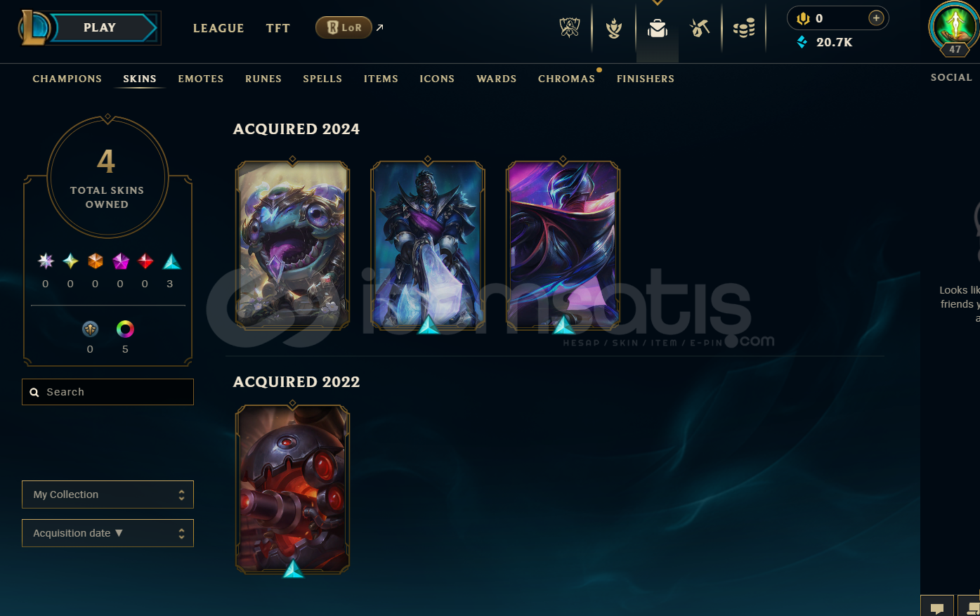 EUW Unranked | 4 Kostüm 20K Mö | Dereceli Hazır