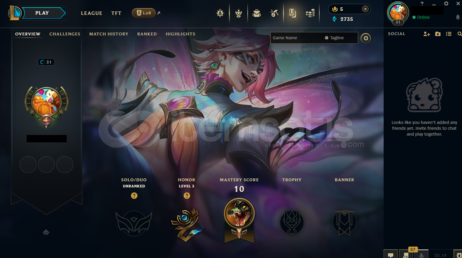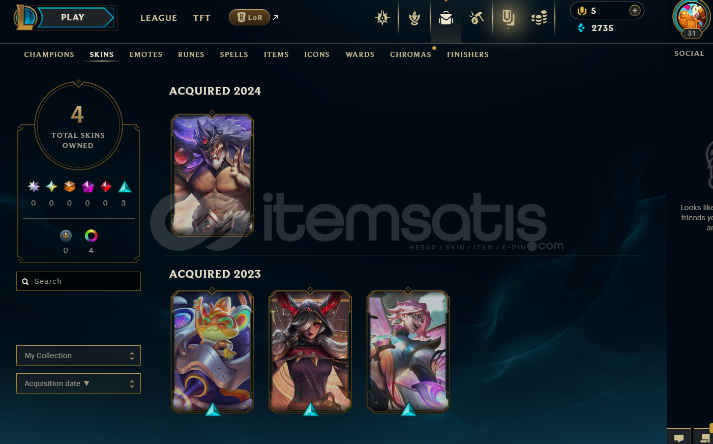 EUW Unranked | 4 Kostüm - 23 Hero | LoL Hesap