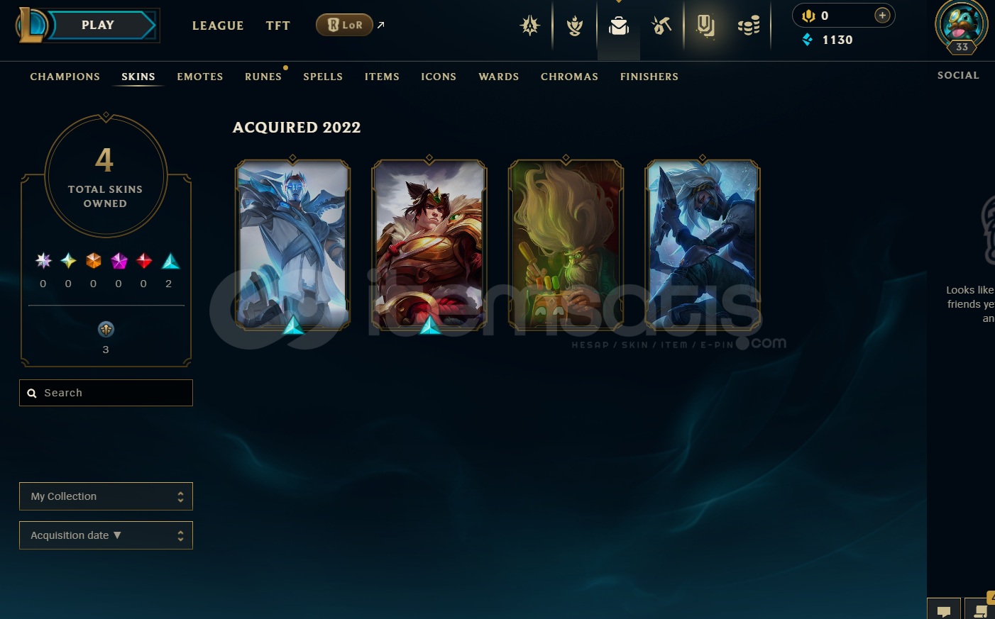 EUW Unranked | 4 Kostüm - 23 Hero | LoL Hesap
