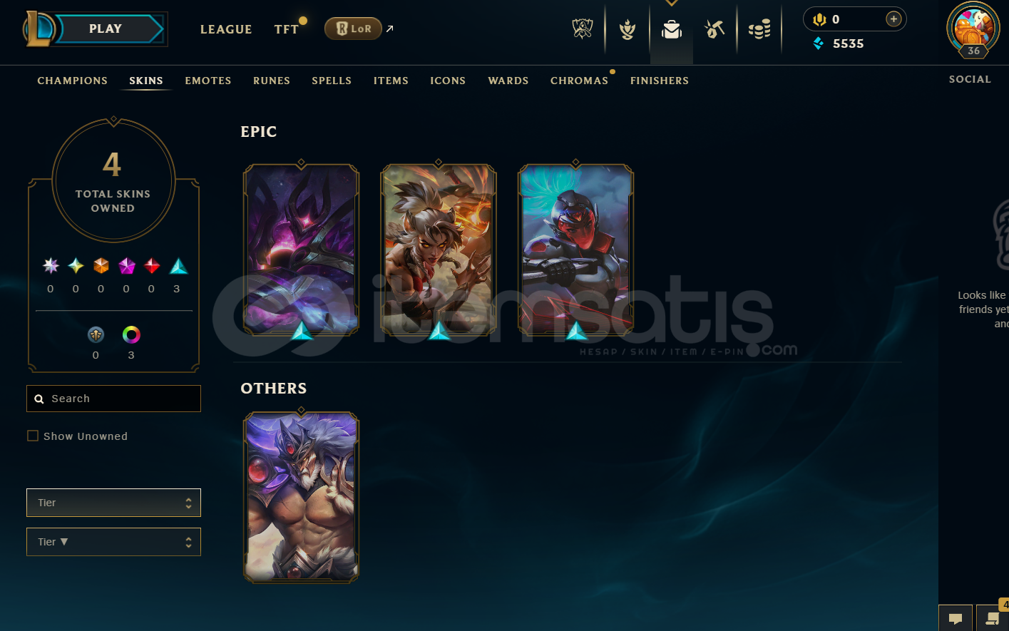 EUW Unranked | 4 Kostüm - 29 Hero | LoL Hesap
