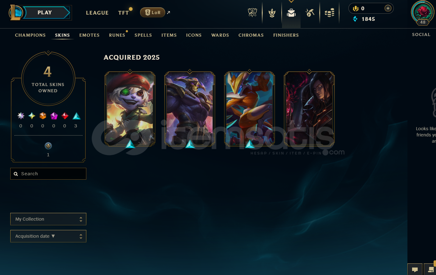 EUW Unranked | 4 Kostüm - 31 Hero | LoL Hesap