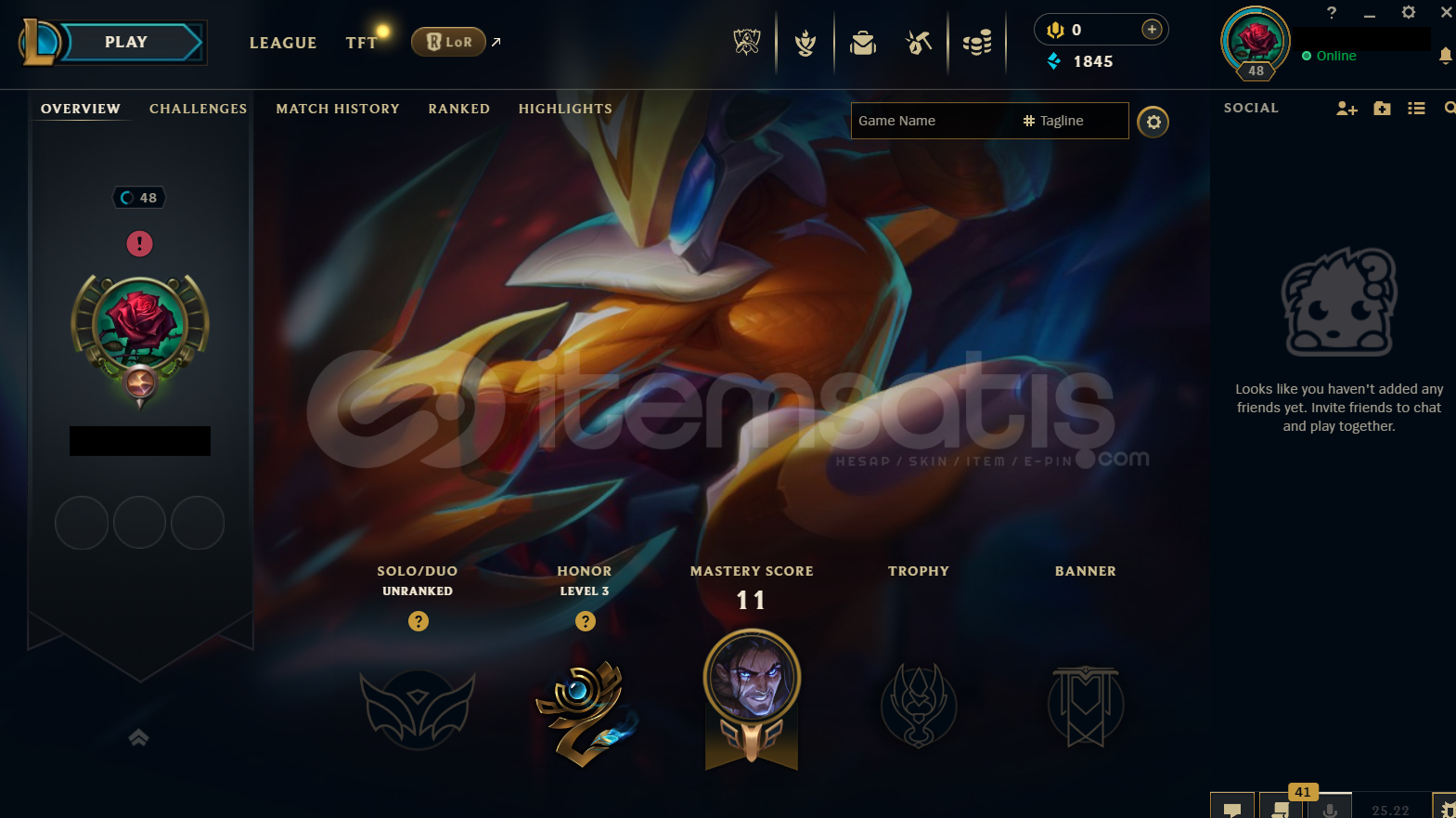 Hesap EUW Unranked LoL Hesabıdır.