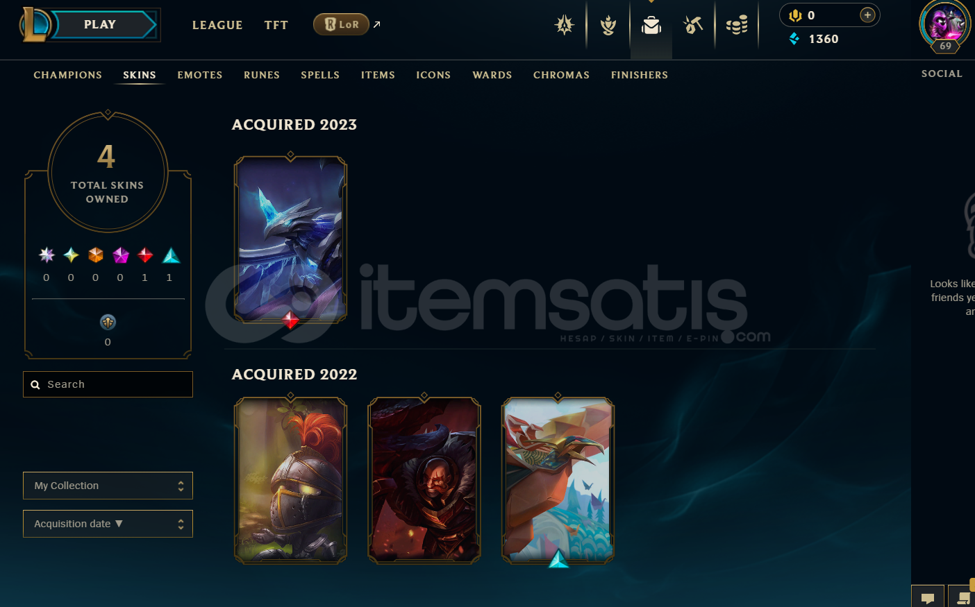 EUW Unranked | 4 Kostüm - 34 Hero | LoL Hesap