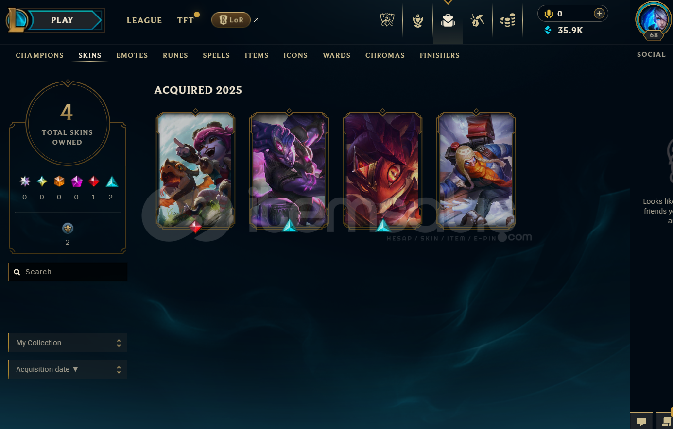 EUW Unranked | 4 Kostüm - 35K Mö | LoL Hesap