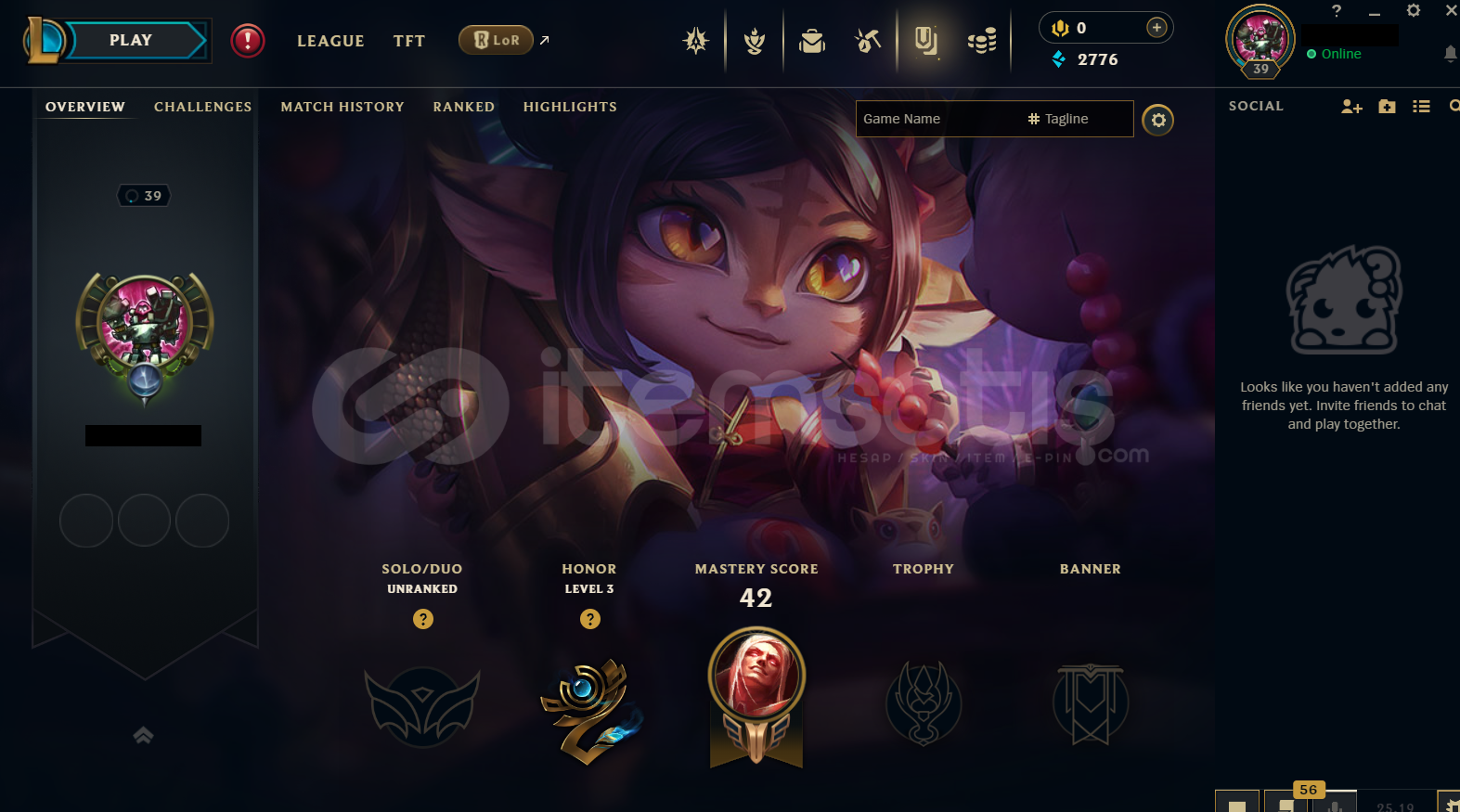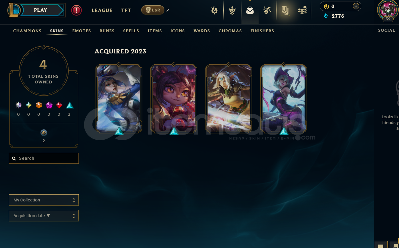 EUW Unranked | 4 Kostüm - 37 Hero | LoL Hesap