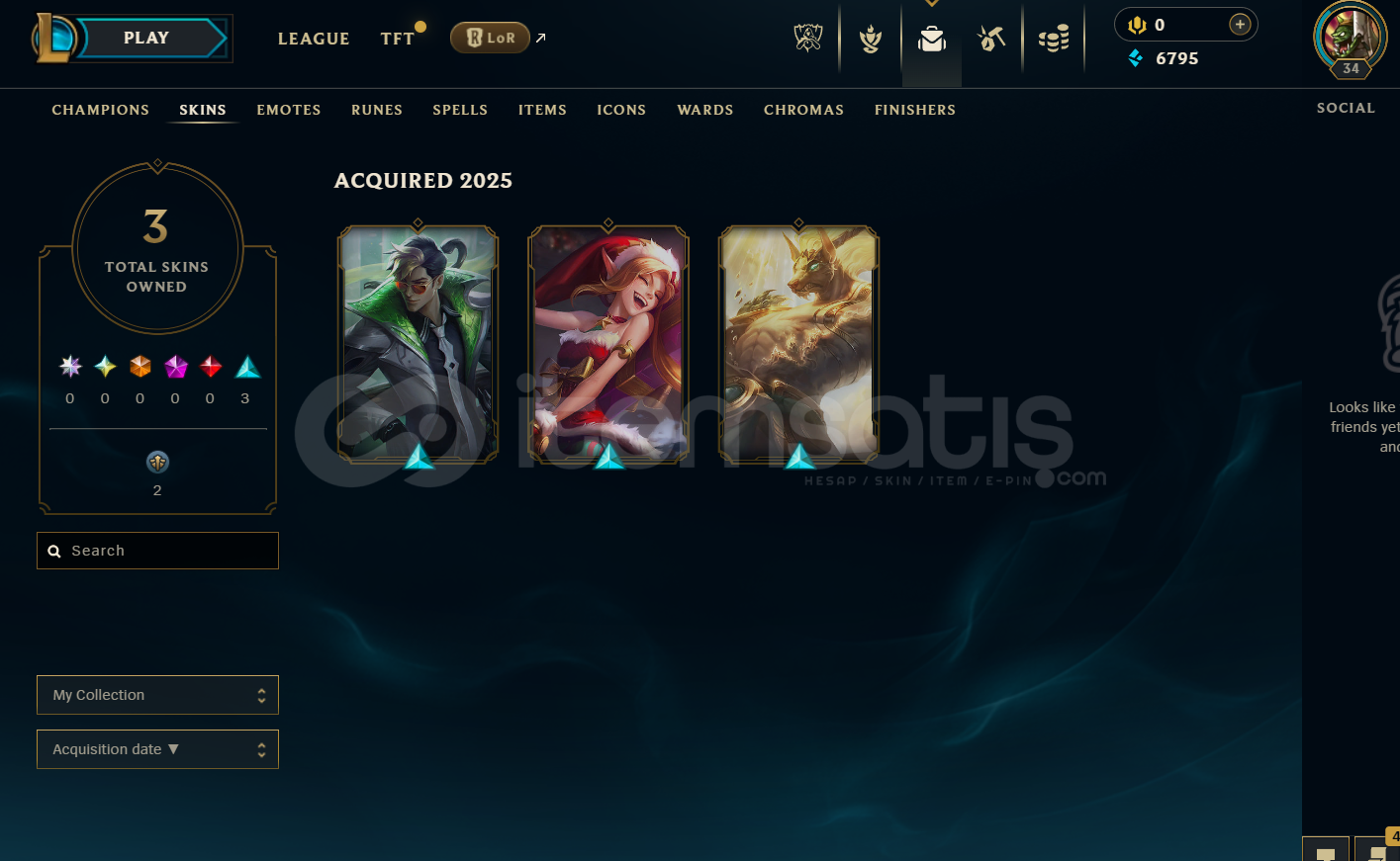 HESAP DETAYLARI:Hesap hiç ban yememiştir ve takdir seviyesi 3 dür.Hesap EUW Unranked LoL Hesabıdır.İçerisinde 6795 Mavi Öz 4 Kostüm 41 Hero ve 3 Adet İade Hakkı Mevcuttur.HESAP HAKKINDA:Kendi mail adresinize kayıt edebilir, etkinleştirmeyi kaldırabilir ve şifresini değiştirebilirsiniz.Hesaplarımızda hiç bir sıkıntı çıkmamaktadır.Herhangi bir sıkınt&#...