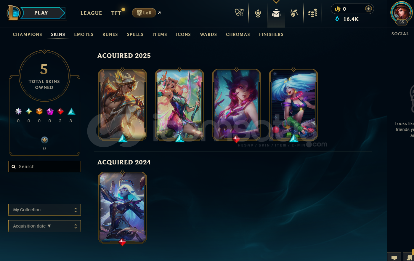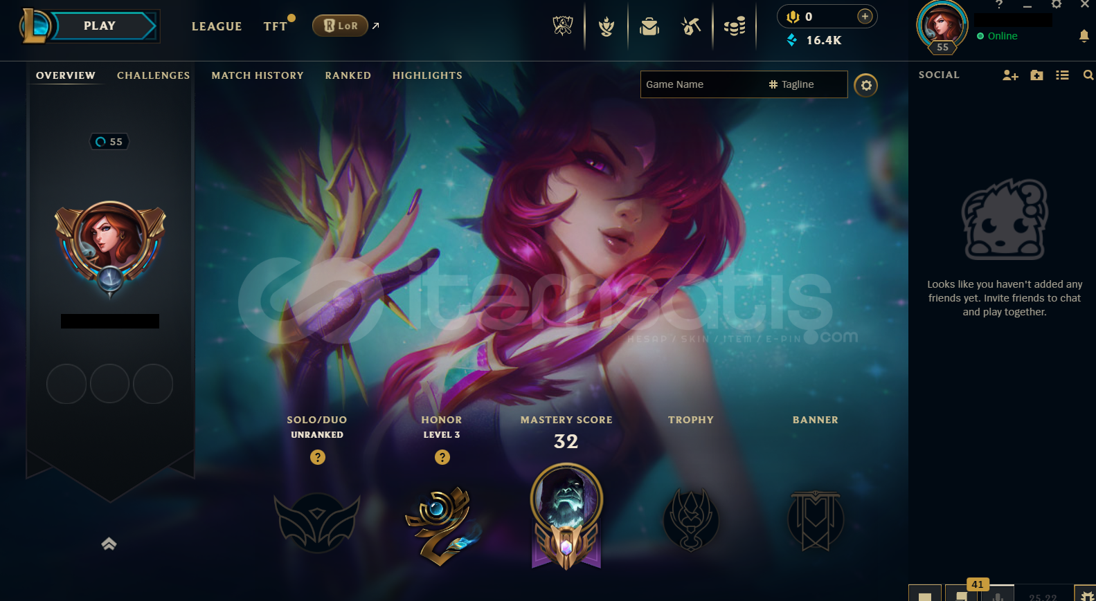 EUW Unranked | 5 Kostüm 16K Mö | Dereceli Hazır