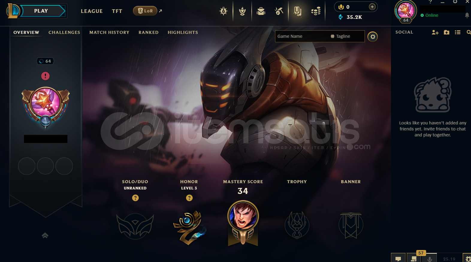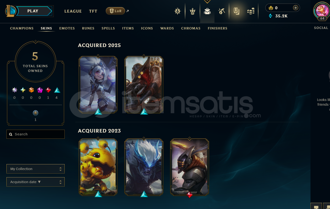 EUW Unranked | 5 Kostüm - 35K Mö | LoL Hesap
