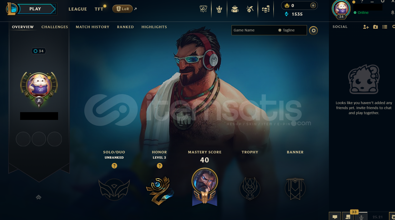 HESAP DETAYLARI:Hesap hiç ban yememiştir ve takdir seviyesi 4 dür.Hesap EUW Unranked LoL Hesabıdır.İçerisinde 5 Kostüm 40 Hero ve 3 Adet İade Hakkı Mevcuttur.HESAP HAKKINDA:Kendi mail adresinize kayıt edebilir, etkinleştirmeyi kaldırabilir ve şifresini değiştirebilirsiniz.Hesaplarımızda hiç bir sıkıntı çıkmamaktadır.Herhangi bir sıkıntıda en iyi dest...