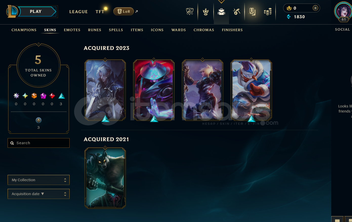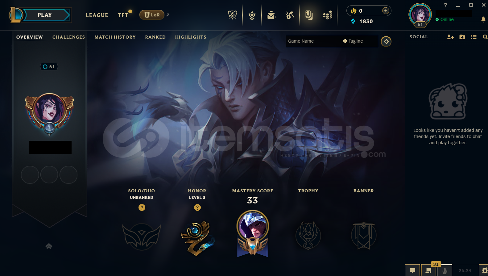 EUW Unranked | 5 Kostüm - 40 Hero | LoL Hesap