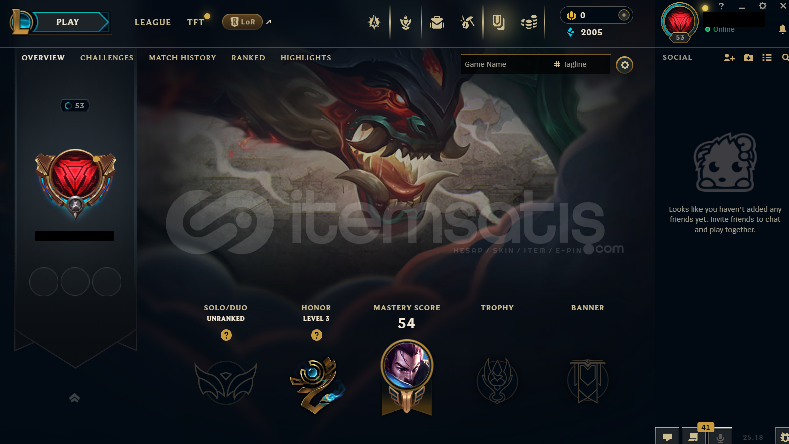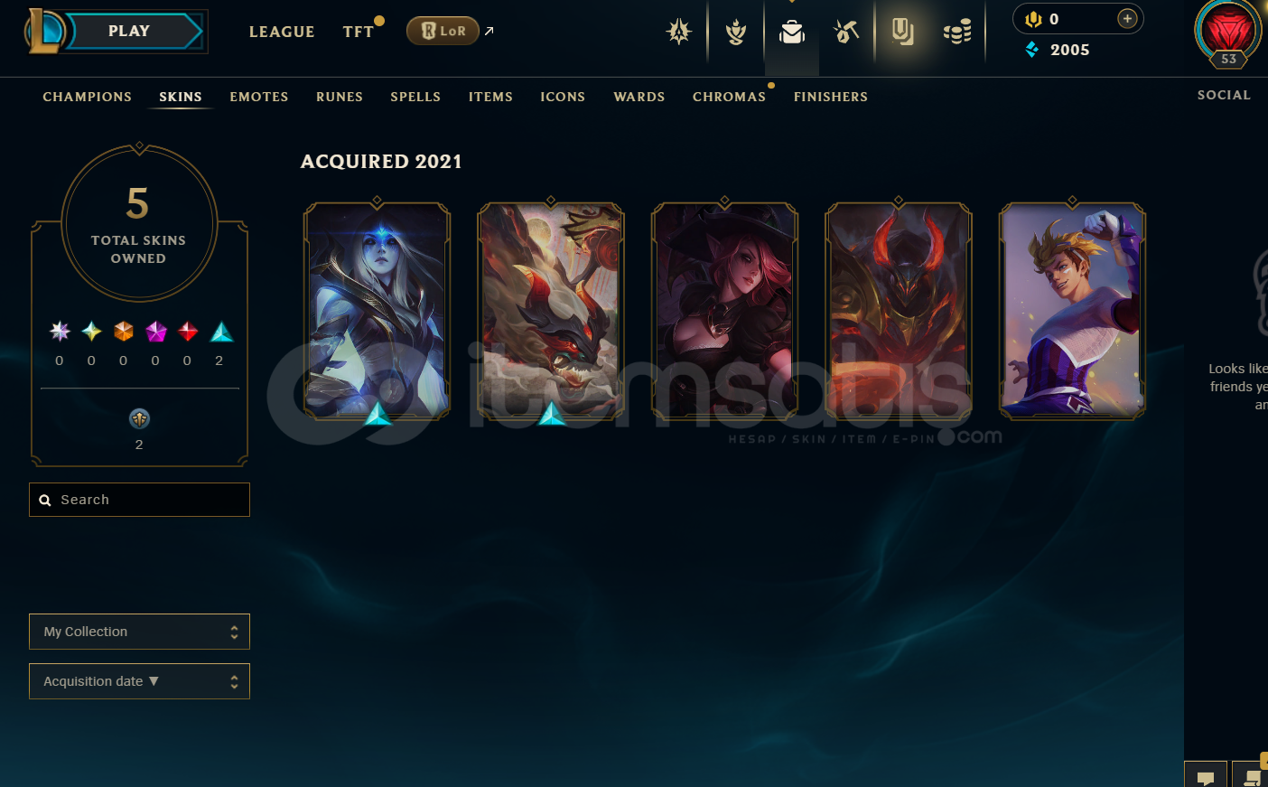 EUW Unranked | 5 Kostüm - 45 Hero | LoL Hesap