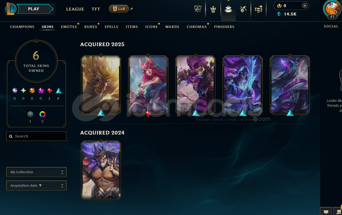 EUW Unranked | 6 Kostüm - 14K Mö | LoL Hesap