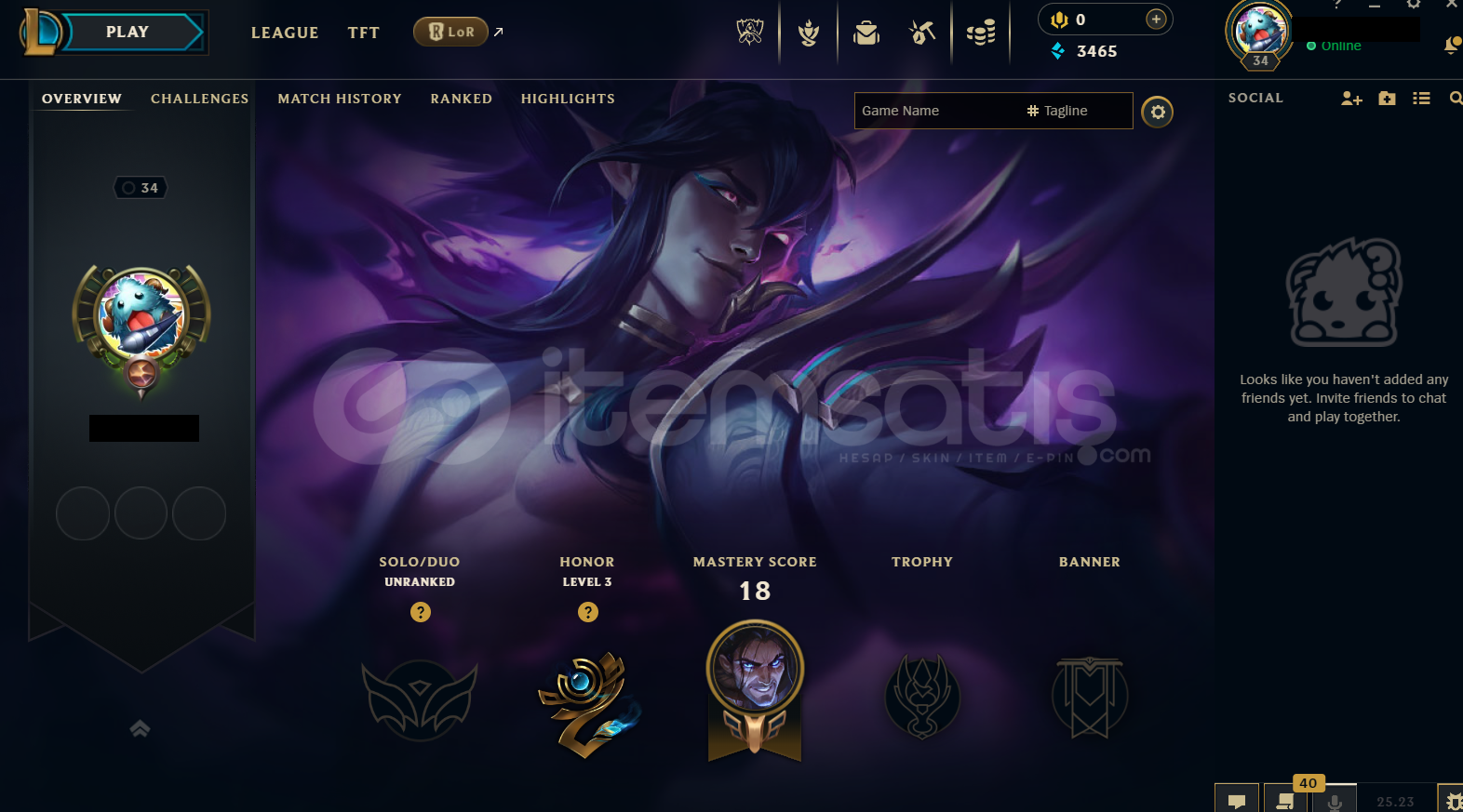 Hesap EUW Unranked LoL Hesabıdır.